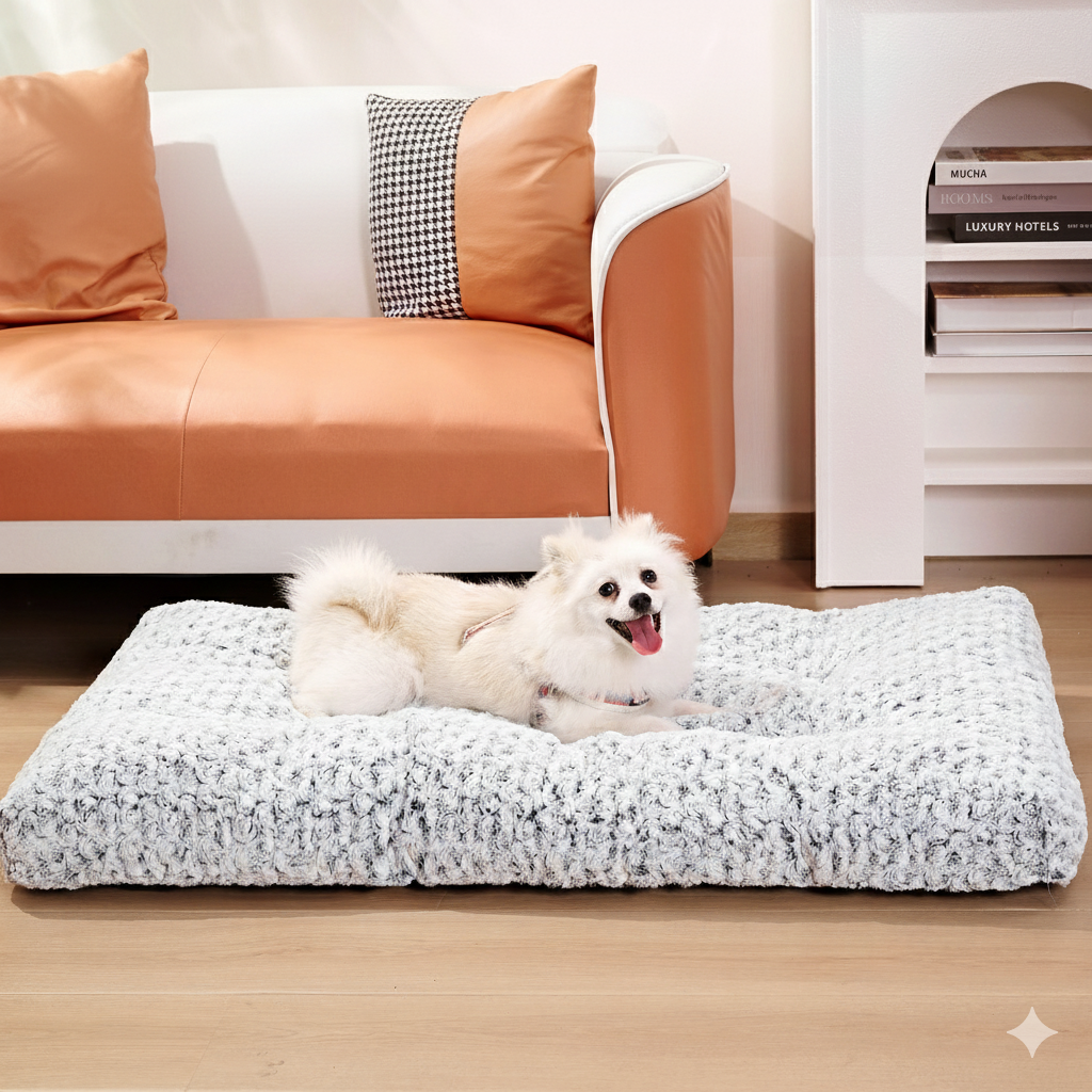 ELVA™ is a thick, plush pet bed designed to support your pet’s entire body during rest. Its generously padded surface provides a soft yet stable place to relax, making it ideal for pets that prefer stretching out rather than curling up.